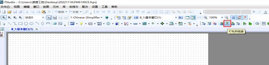 1.觸摸屏接通電源,軟件內(nèi)點擊“打包到磁盤”,