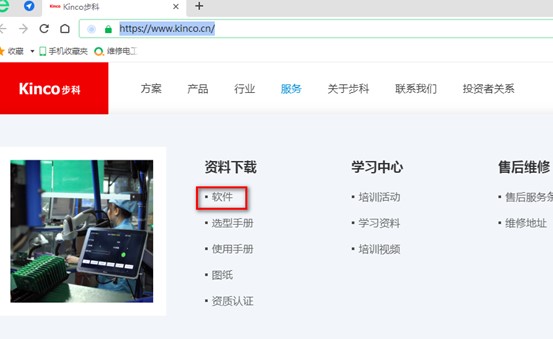 1.打開瀏覽器輸入網(wǎng)址https://www.kinco.cn/